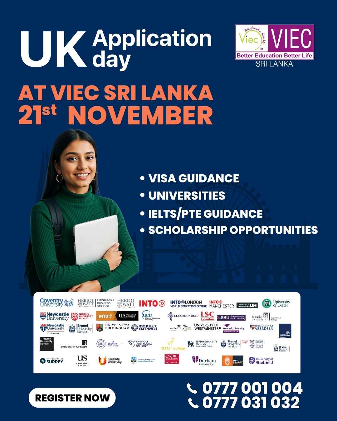 𝐏𝐥𝐚𝐧𝐧𝐢𝐧𝐠 𝐭𝐨 𝐬𝐭𝐚𝐫𝐭 𝐲𝐨𝐮𝐫 𝐝𝐞𝐠𝐫𝐞𝐞 𝐢𝐧 𝐔𝐊 𝐉𝐚𝐧𝐮𝐚𝐫𝐲 𝐢𝐧𝐭𝐚𝐤𝐞 ? Here’s your chance to explore top UK universities and make your dream a reality! Join us at VIEC Sri Lanka on 𝟐𝟏𝐬𝐭 𝐍𝐨𝐯𝐞𝐦𝐛𝐞𝐫 - Get expert visa guidance - Explore courses and universities - Free IELTS/PTE preparation session - Discover exclusive scholarship opportunities 𝐑𝐞𝐠𝐢𝐬𝐭𝐞𝐫 𝐍𝐨𝐰...